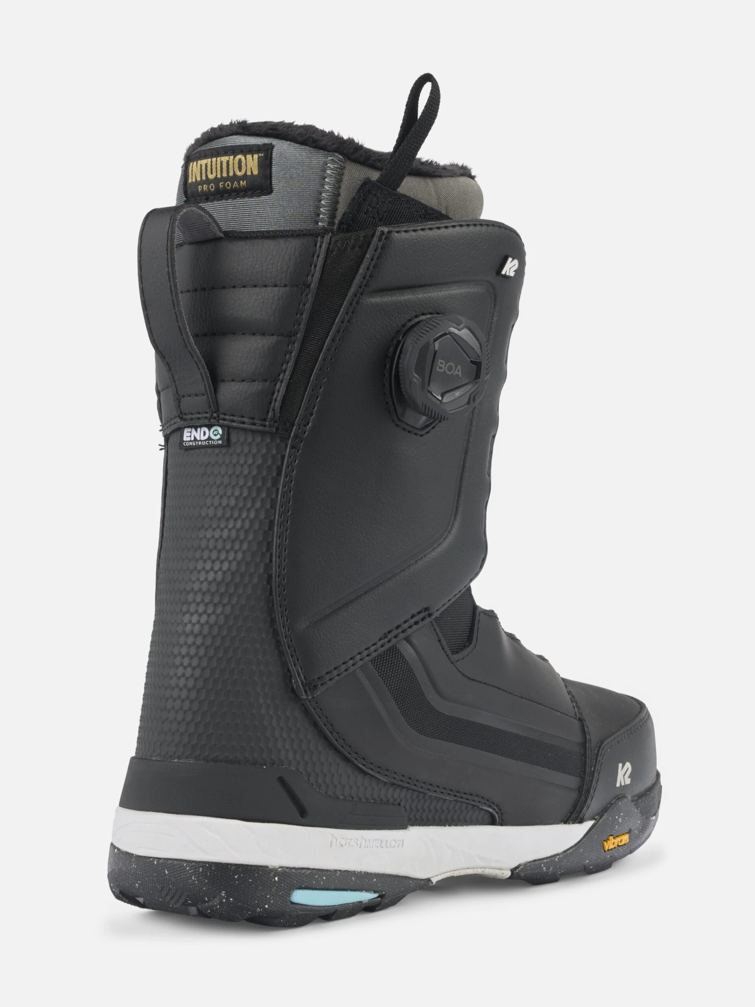 Underfoot, K2’s all-new ultra-rugged Vibram® V5 Outsole provides industry-leading traction and durability in all conditions and terrain. This Vibram® rubber compound comprises at least 30% recycled rubber. Better grip, better for the environment. The V5 rubber outsole is wrapped around a midsole made up of a traditional EVA and K2’s proprietary Harshmellow™ material – helping to absorb impact, increase damping, and provide a “quieter” feel while snowboarding.