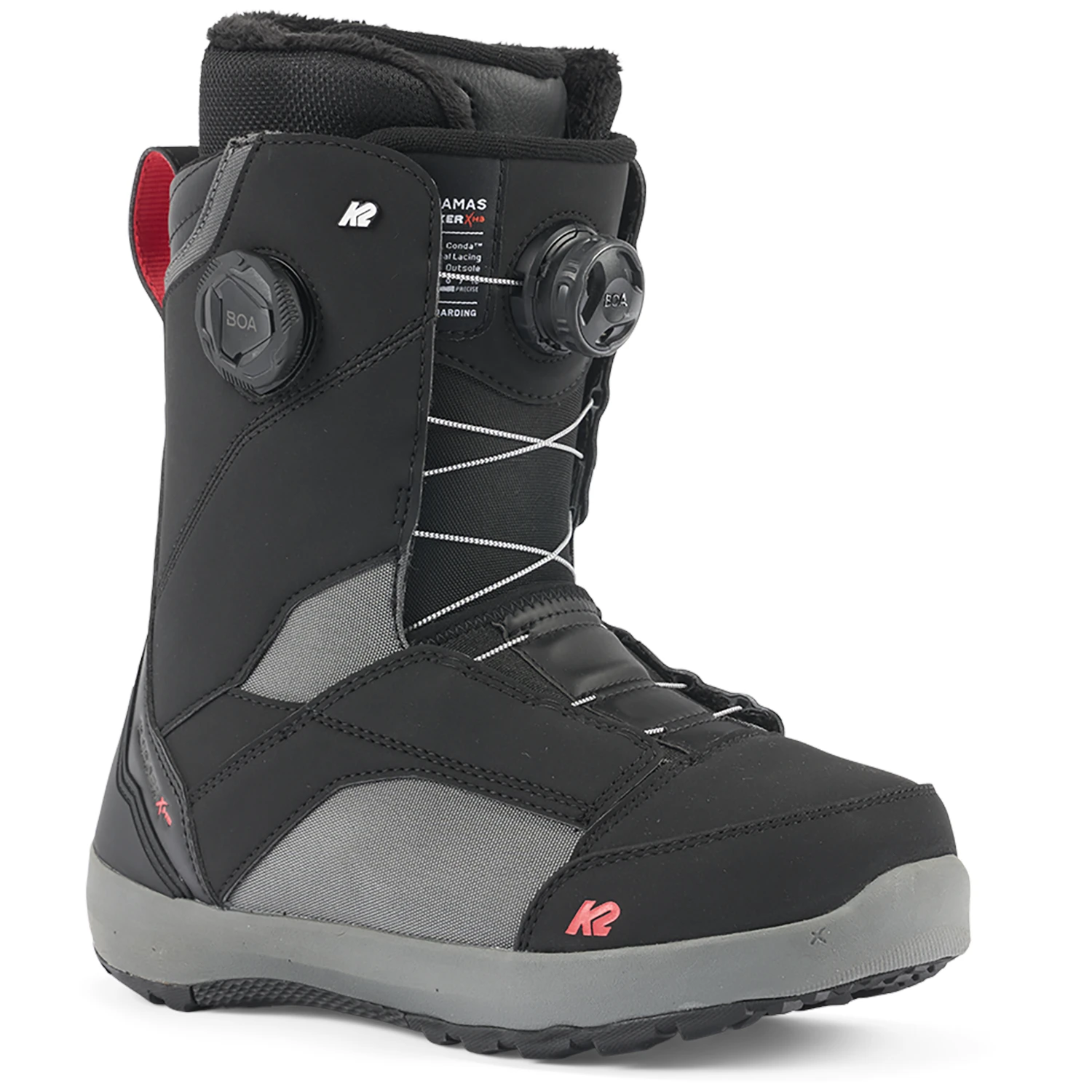 A two reel Boa® system that allows for the upper and lower zones of the boot to be tightened independently.