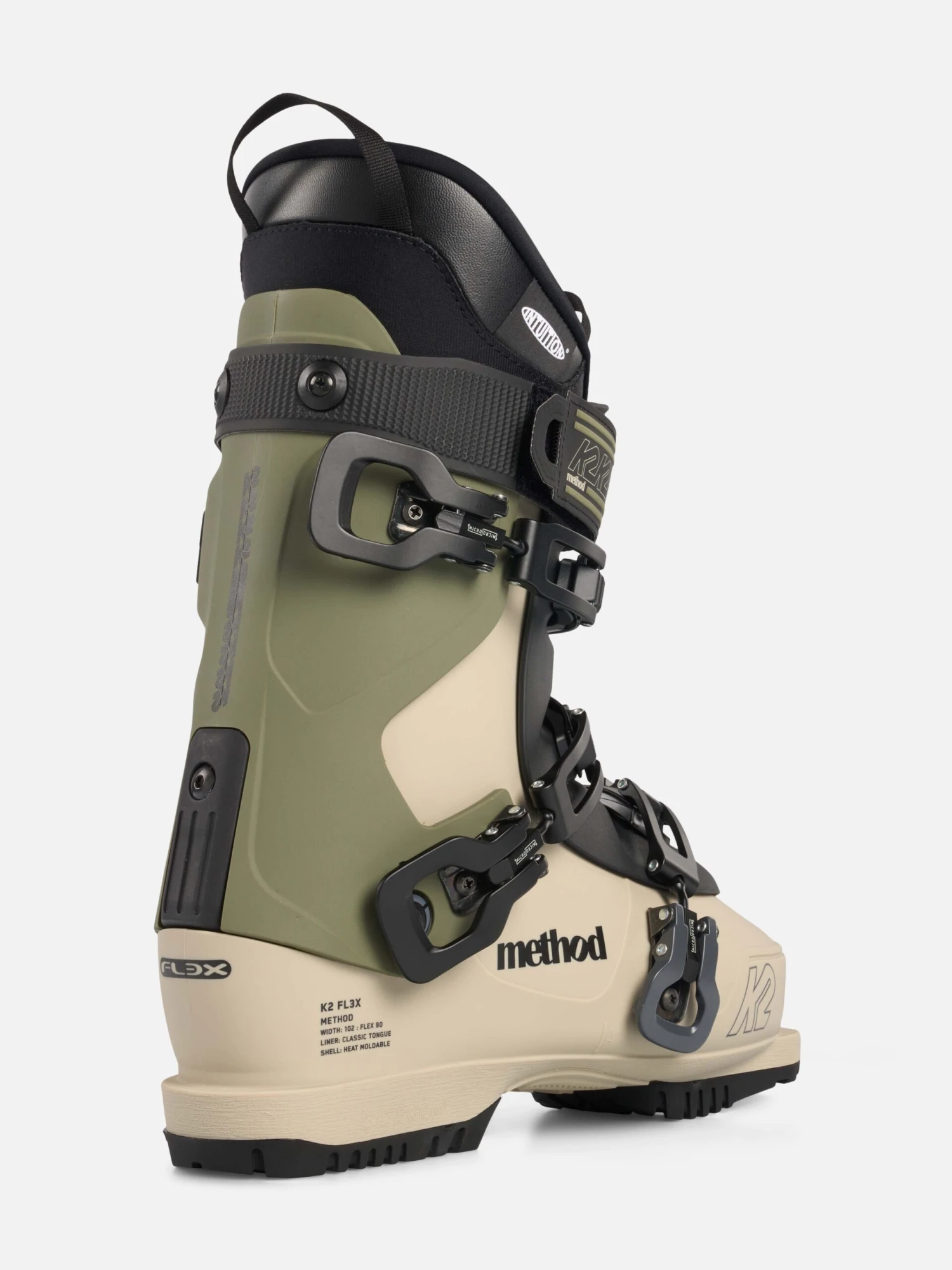 Featuring our Fully Heat Moldable 102mm last Method Shell, Easy Entry Intuition Tongue Liner, and a park-optimized 90 flex tongue.