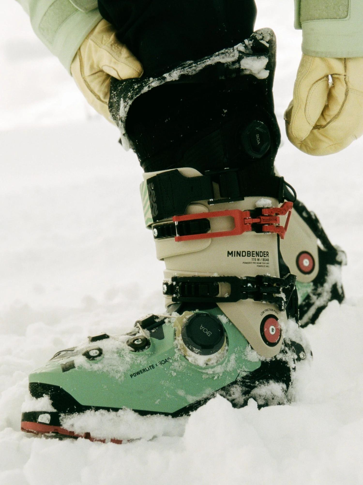 Outfitted with classic Mindbender construction, a heat moldable Powerlite Shell, FastFit Instep, integrated tech fittings, a Powerlock Spyne boasting 50 degrees range of motion, and the PowerFit Pro Tour BOA® liner, the 115 W BOA® delivers an uncompromising uphill and downhill experience.