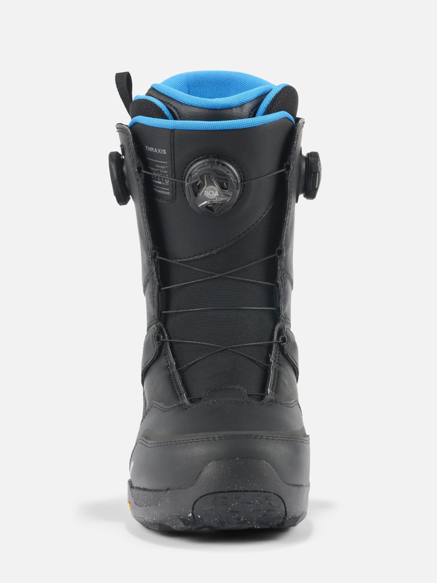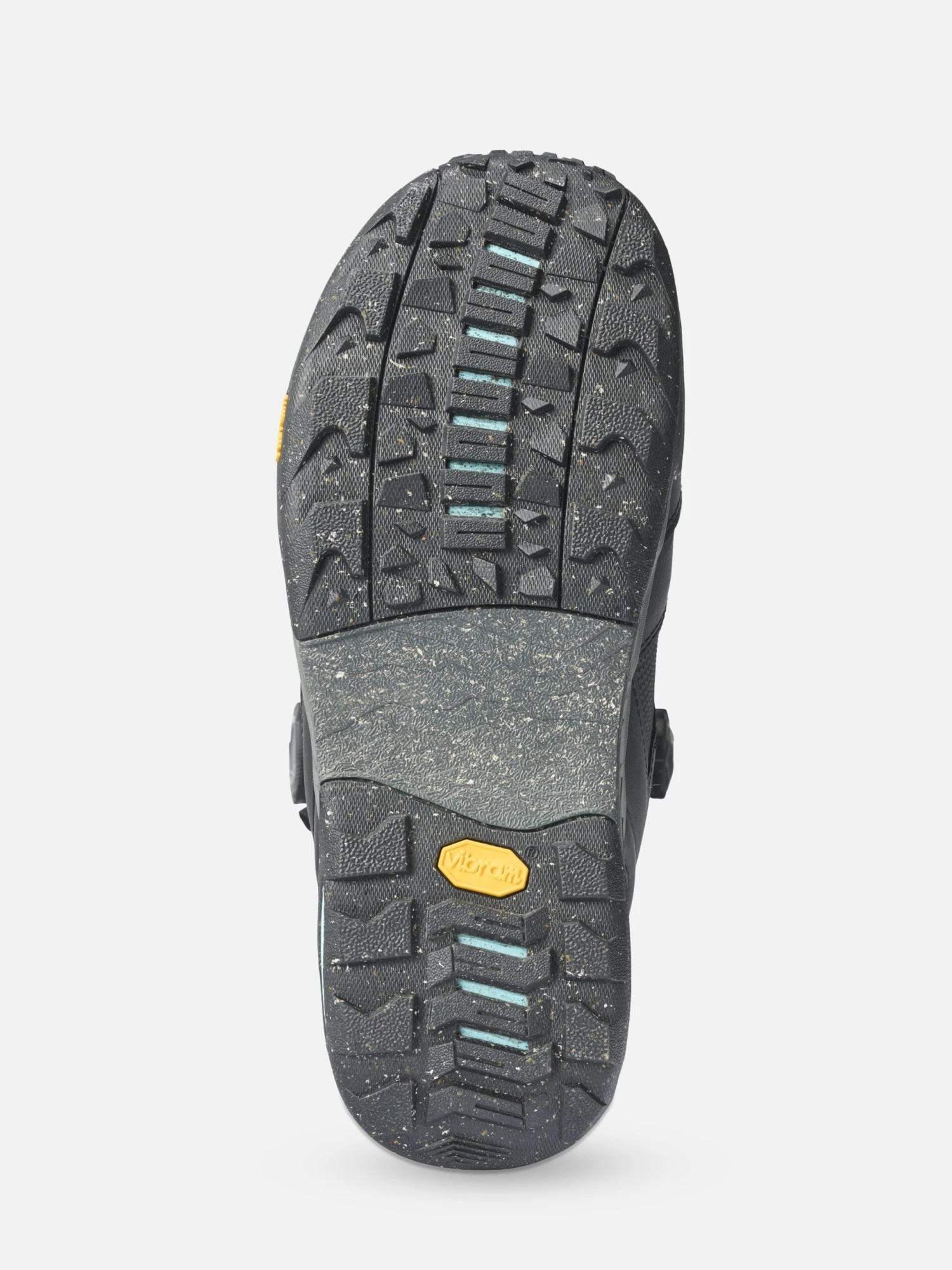 The outsole on the Thraxis snowboard boot is our ALL-NEW Vibram® V5 outsole, providing unmatched traction in the boot pack and is made using at least 30% recycled rubber through the Vibram® Ecostep program.