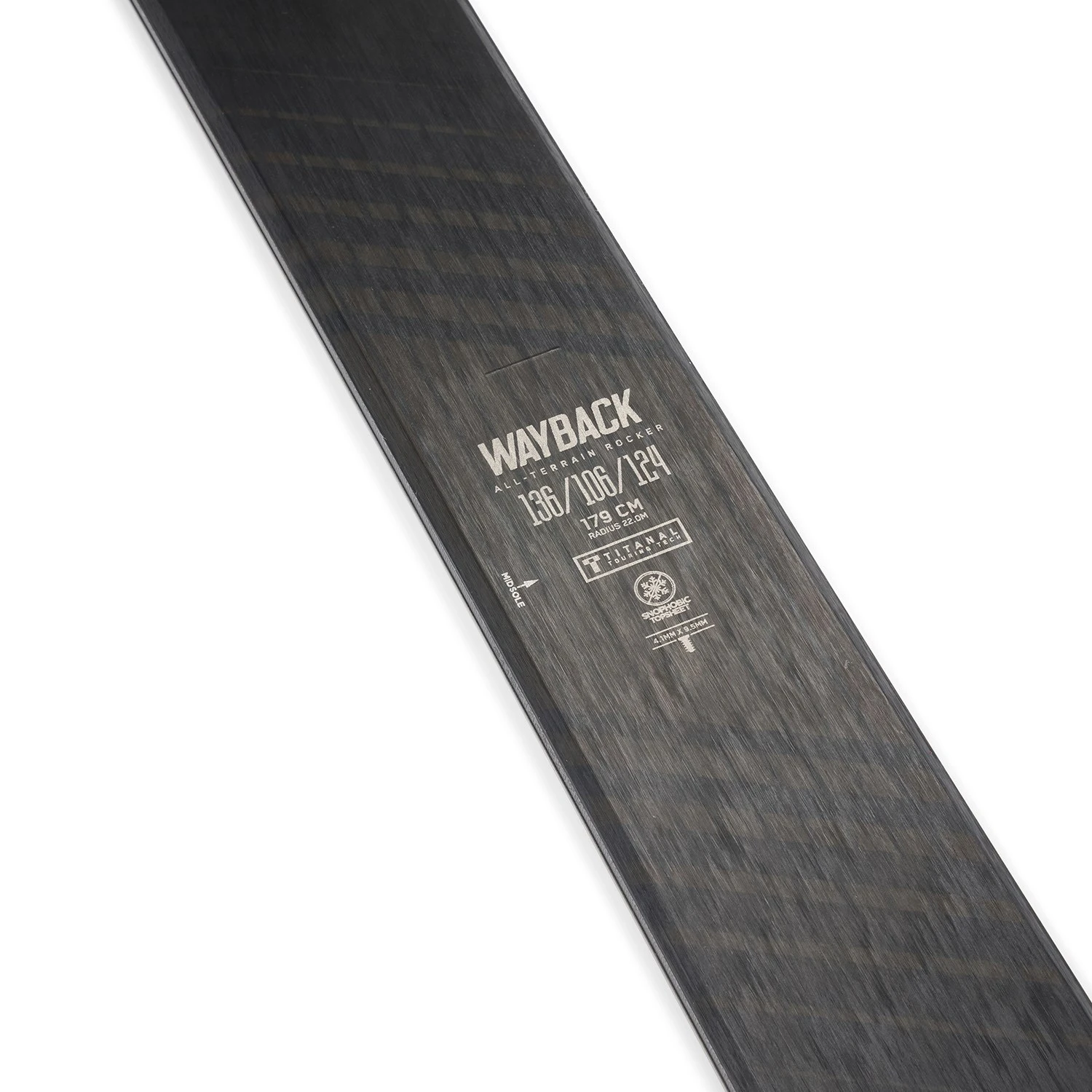 Hydrophobic, snow shedding top material that helps prevent snow from sticking to the tops of your skis.
