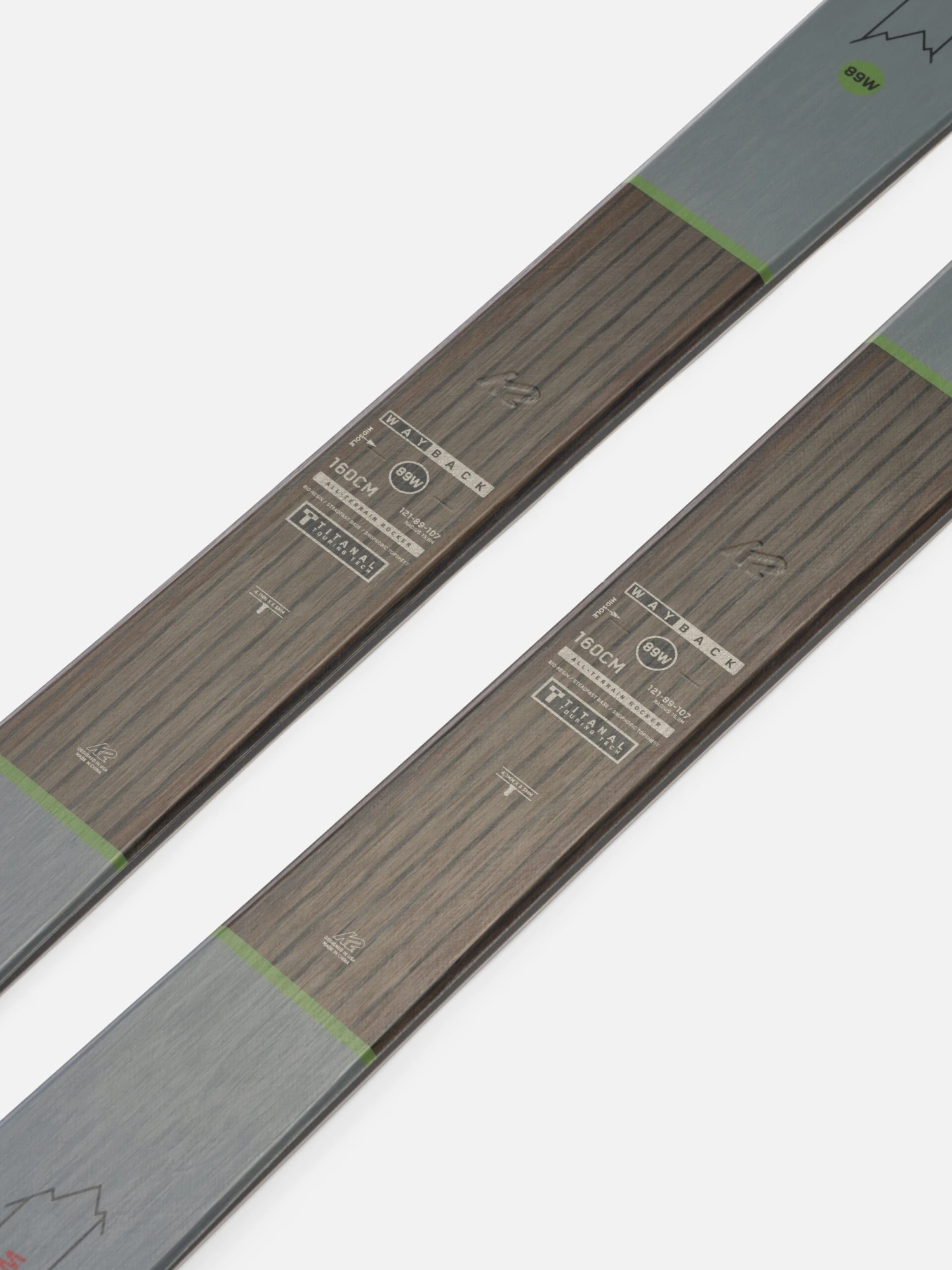Break trail and drop in like never before on the all-new Wayback 89 W. Completely redesigned with input from athletes and guides, the all-new Wayback 89 W boasts a new construction, shape and profile featuring K2’s Titanal Touring Tech, All Terrain Rocker and Bio Resin.