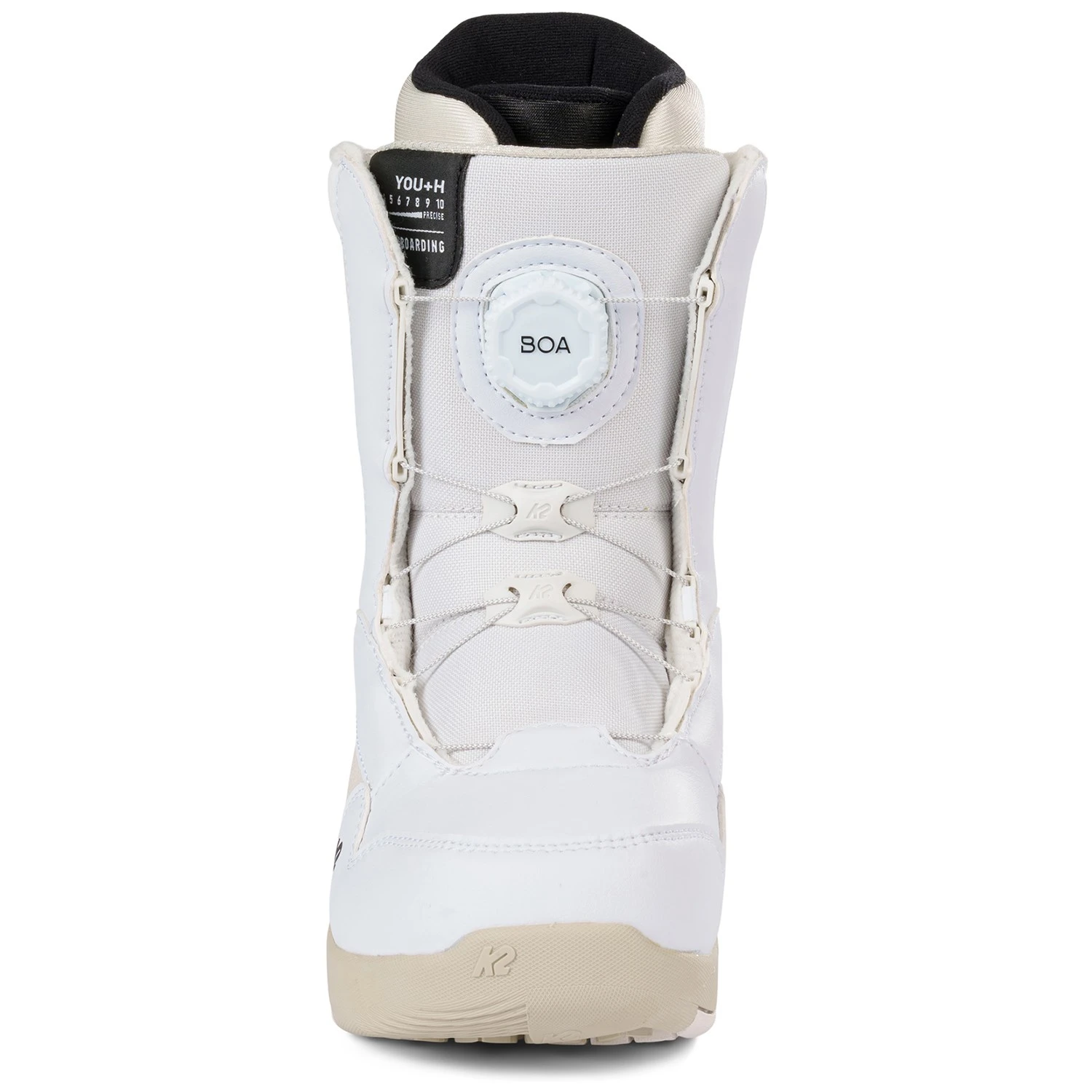 A cable and reel based lacing system that creates even tension and easy lacing operation. This system features low friction guides for even tightening. Boa® works to automatically retract lace slack so your boots stay nice and neat.